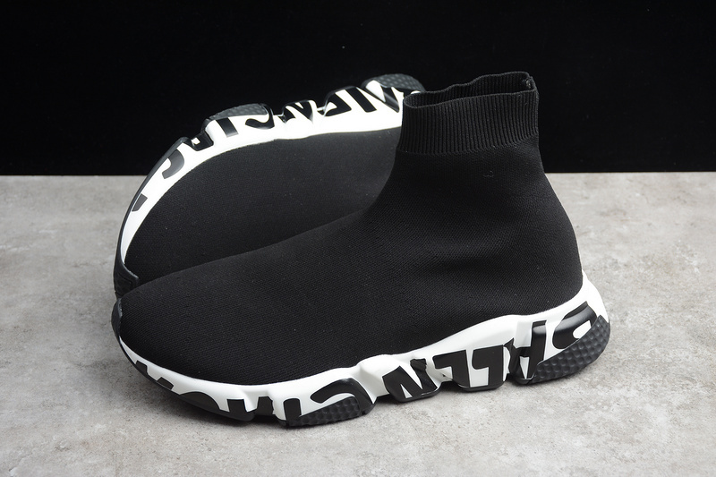 Balenciaga Speed Graffiti Trainers White Black Logo